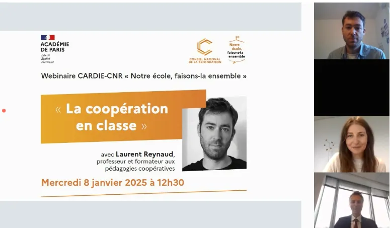 Comment favoriser la coopération entre les élèves? Comment passer du travail de groupes au travail en groupe? Comment animer une heure de classe coopérative? Voici quelques questions posées lors du webinaire CNR-CARDIE organisé le 8 janvier 2025.